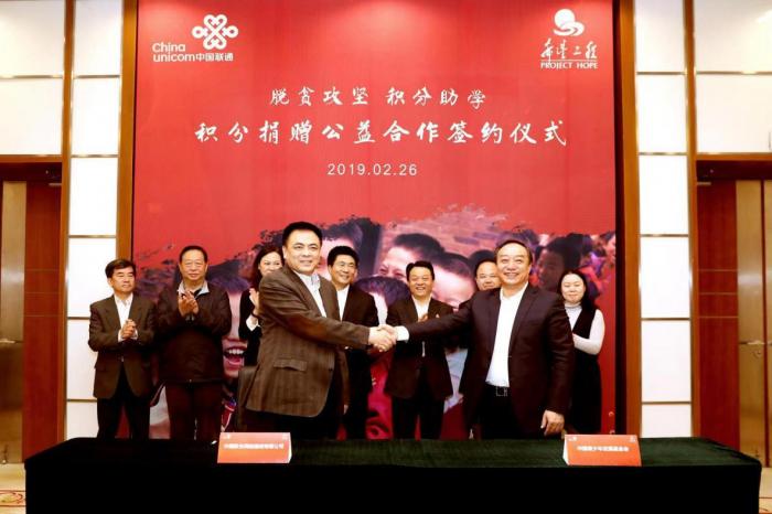 2月26日,中国青少年发展基金会与中国联通在北京举行签约仪式,启动了“中国联通积分助学计划”公益项目。团中央书记处书记傅振邦、中国联通副总经理买彦州、中国青少年发展基金会理事长王剑出席了活动。作为“希望工程最佳公益合作伙伴”,中国联通聚焦教育扶贫,首期执行项目为“积分助学计划之‘圆梦’行动”,以积分对应的现金金额兑换被称为构建了多元化公益参与新模式。