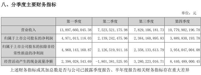 细看五粮液的季度销售,五粮液首次在单季营业收入高达百亿元以上。由于去年春节在2月中旬,五粮液的销售旺季明显反映在了去年第一季度上,营收创下全年季度最高,为139亿元。去年,五粮液营收上百亿元的还有第四季度,为108亿元。量价齐升,五粮液的单季利润也呈现出和营收一致的趋势变化。
