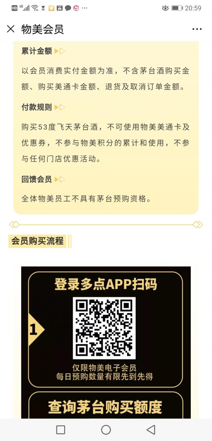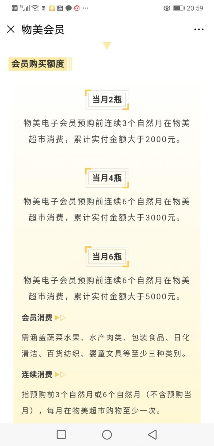 二是在会员购买额度上,被删掉的公告指出,“物美电子会员预购前3个自然月在物美超市消费,累计实付金额大于2000元,”可以当月按1499元/瓶购买2瓶53度500毫升飞天茅台酒。