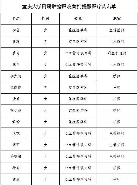 重庆大学建筑城规学院副院长谢辉的微信朋友圈显示,重庆大学附属肿瘤医院、重庆市急救医疗中心/重庆大学附属中心医院2支医疗队奔赴武汉,重庆大学附属三峡医院医护人员奋战前线。