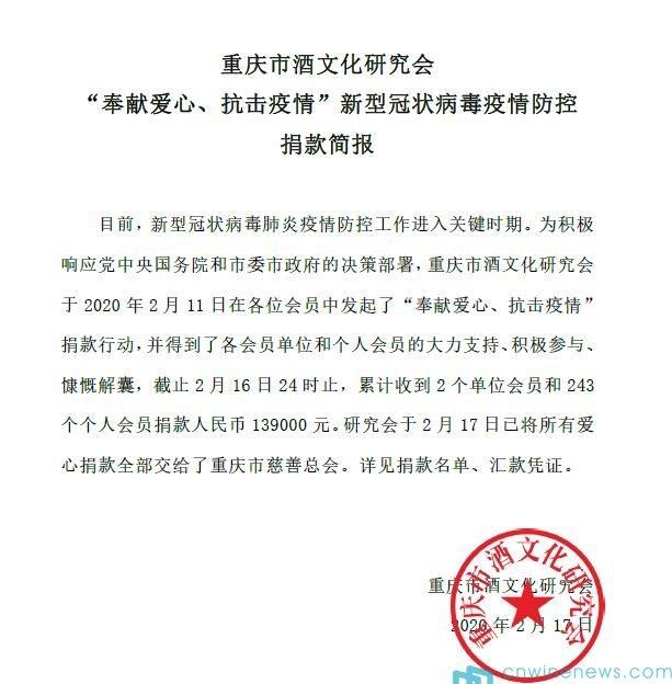 “当我看到战‘疫’一线,数不胜数的感人事迹,全国酒行业一个个无私奉献的壮举,我们在家里还能做点什么?”2月初,重庆市酒文化研究会会长陈昌斌在微信上对21世纪经济报道记者说。