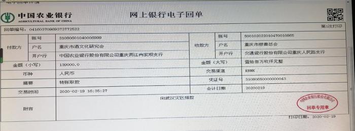爱心捐款全部交给了重庆市慈善总会,用于抗击疫情的统一支配需要。