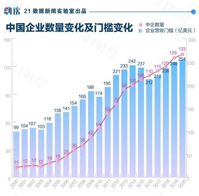 随着中国经济总量的迅速增加,中国上榜企业实现飞速增长的同时,企业的规模也越来越大。