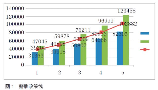 企业可以首先通过岗位评估,建立起正规的岗位职级体系;之后再对标市场同类岗位,结合市场薪酬水平建立起自己的薪酬架构,图1就是一种常见的薪酬架构图。