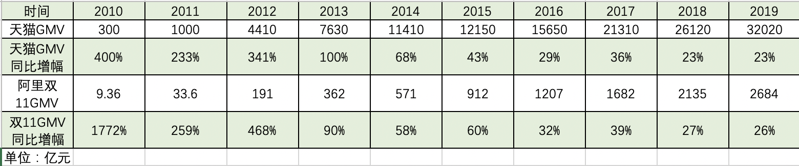 此后双十一的带动作用每况愈下。到了2015年,双十一交易额的增幅甚至开始超过天猫。年双十一交易额60%的增长,就只能换回天猫年度交易额43%的增长了。此后每况愈下,从2016年至2019年,双十一交易额的涨幅已经和天猫年交易额的涨幅维持在3%-4%。