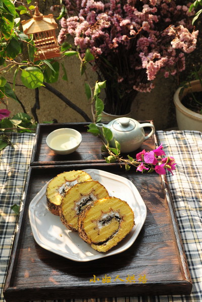 养生甜点:阿胶黑芝麻核桃鸡蛋卷~