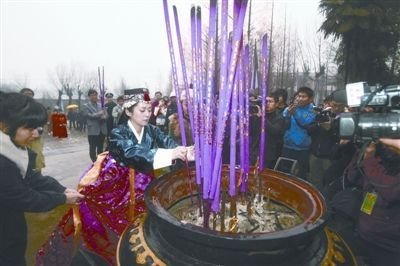 昨日上午,着全套传统韩服的张娜拉与父亲朱虎声来到李时珍的墓前,不料突降大雨,张娜拉为此准备的全套韩式跪拜大礼也未完全展示。据了解,为此活动牵线搭桥的是“网络春晚”,她与父亲合演了一出穿越到中国明朝找李时珍看病的小品。而张的外公又是韩医,其医术就是源于李时珍的《本草纲目》,遂产生了代外公前往医圣故里祭拜的愿望,双方一拍即合。