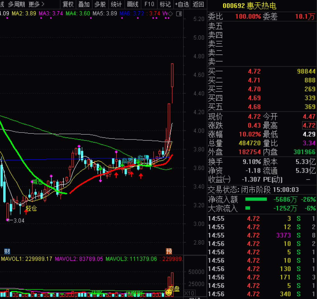 惠天热电,沈城第一大专业供暖上市公司,供热面积占沈阳总面积1/4。横盘蓄势待发,强势突破,有望继续加速上攻。