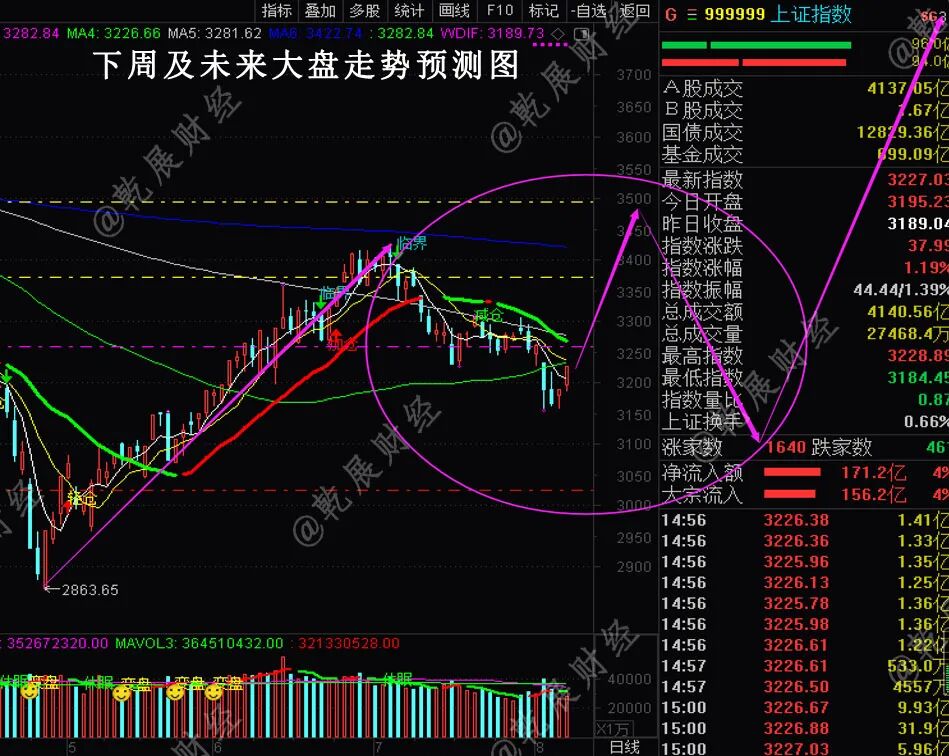 以目前大盘所处的形态位置分析,日线、周线、月线均处于反弹位上,且有望突破前高,因此,我非常有信心,在这么曲折的一周坚定看好!大盘构筑强势调整形态的几率较大,这种走势是最有利于后势发展的!除非下周爆发突发事件且不可控,否则,继续上攻甚至加速上攻都是大概率事件。乾展财经下周依然很乐观,积极主动看多做多。板块上,可以重点关注种业、消费电子、军工等人气热点龙头股的机会,有些行情才刚刚开始。轻大盘重个股,严格按照九龙决策系统分时买卖原则执行即可。