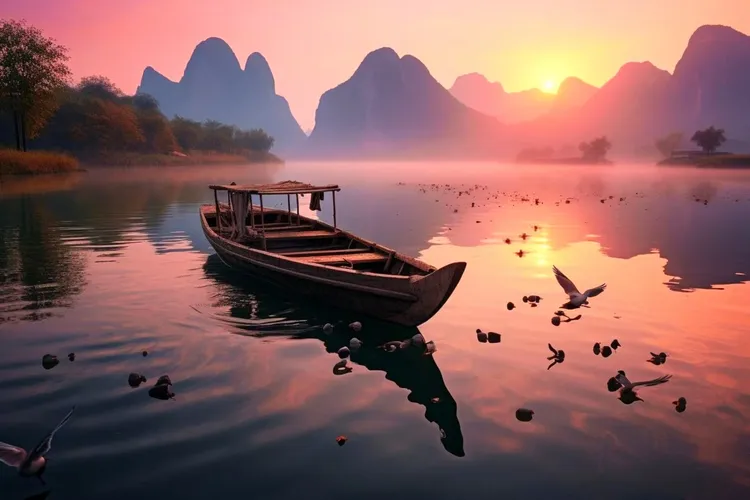 阿哥舞桨裁明月,么妹飞篙刺夕阳,