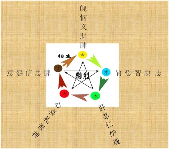 再说“七情”。中医认为比较严重的情绪变化都会对五脏造成损伤,喜伤心,怒伤肝,忧思伤脾,悲伤肺,恐惊伤肾。比如说范进中举,一高兴就失心疯了。因为大喜伤心。那么他岳父是怎么救他的?心属火,肾属水,水克火。岳父打了他一个嘴巴子,他一惊,就好了。