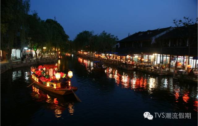 周庄是休闲的,泛舟纵横交错的古镇河道,才子吟诗作对把酒临风,佳人箜篌古筝铮铮作响。水巷的灯船更为古镇平添几分夜的神韵,“灯光古桥泛船影”,这就是古镇之夜的魅力。