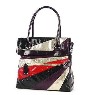深紫色蟒蛇纹路手提包,这个夏日,绚丽的红色,高贵的深紫色,闪耀的银色,百搭的黑色,四色拼接,简单中弥漫高贵的气质,再加上蟒蛇纹路的设计,让包包折射出独特的彩色光芒。