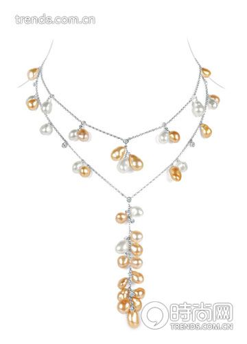 Mikimoto 18K白金 巴洛克南洋珠钻石项链
