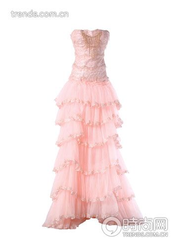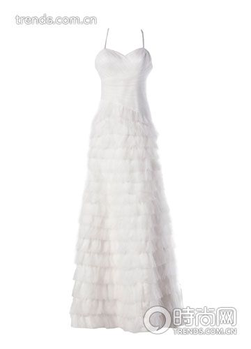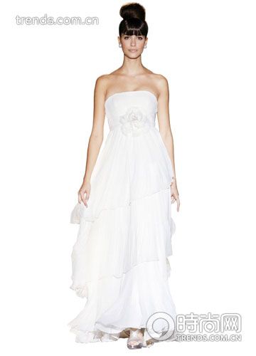 轻盈的质感用丝光面料的简洁款式最能体现绉纱、绡、塔夫绸,这样一些偏硬面料堆出来的纱裙效果,能让礼服呈现云状的飘逸清透感。感光的成份在整片裙的结构中最容易突显出来,婚纱名家Vera Wang会经常用这样的手法利用面料本身的特性,做出简约而漂亮的款式。