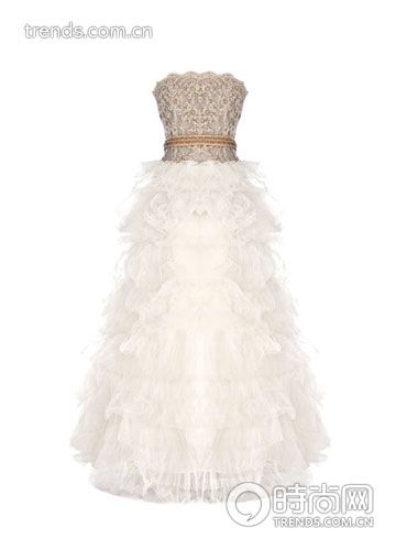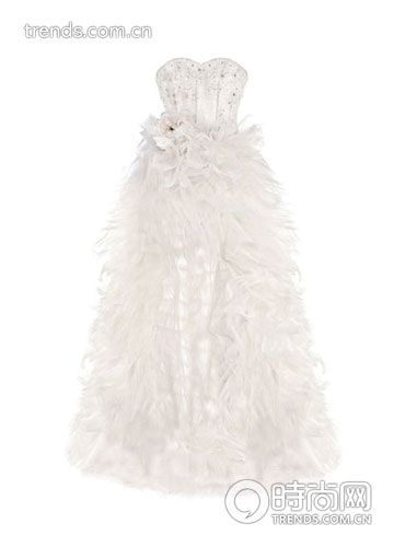 轻盈纱幔的立体花朵是今季的热点 今年花朵造型是婚纱的大热,轻盈纱幔聚成的花朵让所有的新娘都分外的妩媚美好。轻薄面料自然的效果,在肩头,裙边以及腰际的组合非常讨巧。聪明的新娘要学会合理地利用花朵,既可以成为应景的装饰,又能修饰身形。比如身材单薄的新娘,可以在上半身或肩头增加随意的捏褶花朵,而娇小的新娘,可以将花朵零散而不经意地点缀与裙摆间,同样在视觉上会有俏皮轻盈的效果。