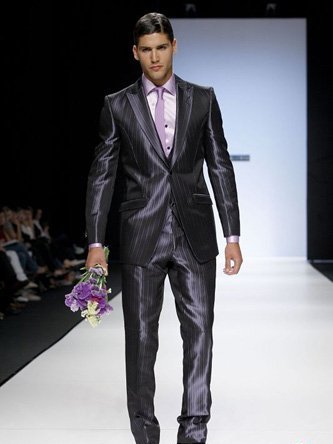 相对于精彩纷呈的新娘婚纱,新郎的礼服常常处于配角位置,然而今年国际发布会上,设计师们的新品预示着“新郎色”时代的到来。不再是一成不变的黑灰白西装,红棕色、金色都是新郎最时尚的选择,而亮紫色、条纹衬衣、领带等配则将新郎的雅皮风格进行到底。
