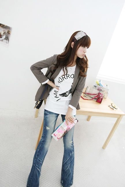 时尚点评:秋意渐浓,怎么可以缺少了外套的点缀呢?灰色的色调也蛮有秋天的味道的,女式西装外套穿起来感觉特别成熟,同时又不时甜美feel,真正是潮女们在秋天点缀搭配的最佳选择之一!