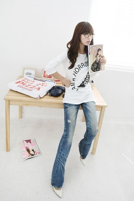 时尚点评:完全包裹双腿的长裤总是对夏天敬而远之,点缀着猫须与破洞的糜烂牛仔裤也能表现出如此优雅的淑女味,修脚的牛仔裤搭配白色的尖头高跟鞋把运动的感觉丢开,中袖长度的白色贴身上衣感觉特别优雅,爽朗的潮女形象也能如此迷人!