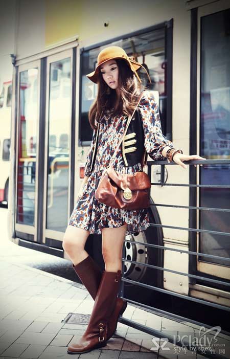潮流大热的连衣裙,一年四季都绝对不会过时,特有的一件式款式,既方便又可以更好的修饰我们的身材,使MM更加魅力无限。雪纺的材质舒适、轻便,随意折放,不用担心褶皱问题,外搭小马甲修饰更显精干,休闲长马靴潇洒帅气,大大的宽檐圆帽不仅可以起到很好的遮阳作用,又增添了可爱气质。