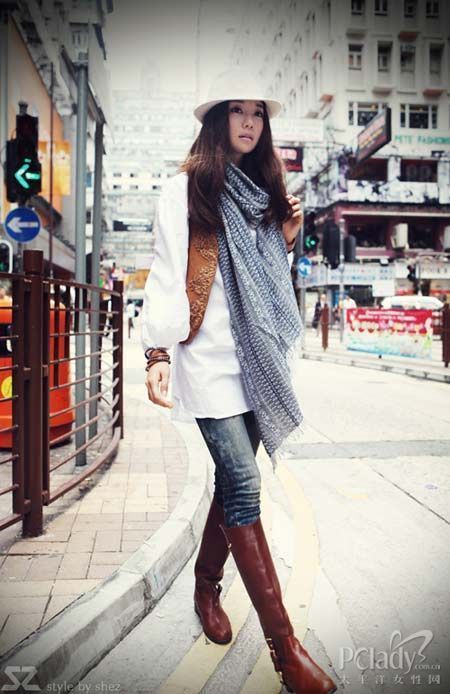 今季白衬衫款式多变,打破了传统沉闷的风格,宽松长款的休闲款引领时尚潮流。可爱的灯笼袖成为亮点,外搭的民族风格小马甲独具特色,彰显你的穿衣品味。休闲的长款马靴增加型格韵味,爵士小帽让你更具风采。
