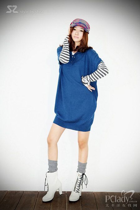 宽松的长款大件服装舒适简单,又不失时尚感,明亮的海蓝色让你心情也随之放松,散发出青春的活力气息。两件的搭配方式打破了单独一件式沉闷的模式,内搭强烈的条纹对比突出了服装的层次感,白色短靴提亮整体色调,更显轻快活力。