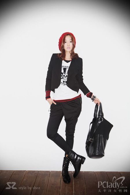 设计精致,剪裁优良的小西装可谓是今季的必备单品,超时髦的灯笼裤,酷感十足的军靴,变身时髦酷女郎。酷感的骷髅白T,与鲜艳的红色条纹T长短混搭,层次感穿搭超有范儿。