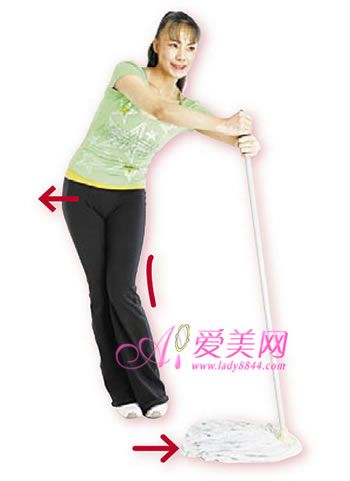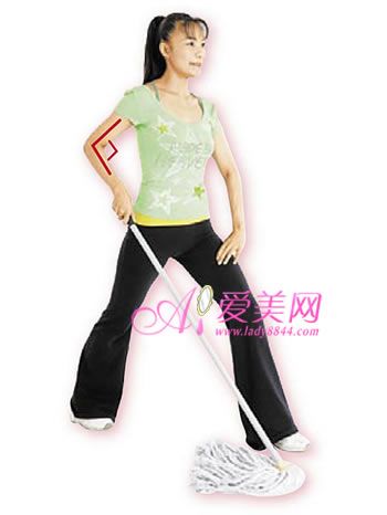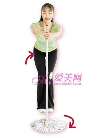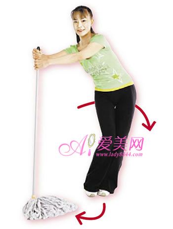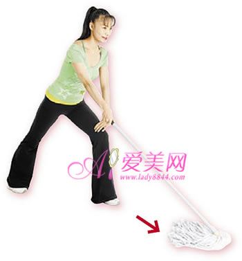 效用:运动臀部肌肉,同时利用摆臀方式让拖地增加乐趣。