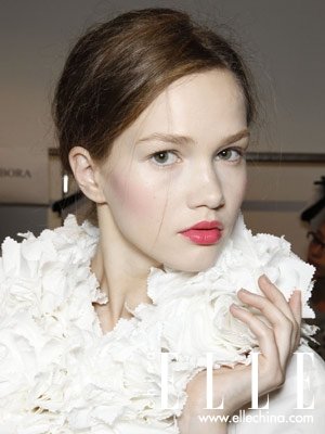 Skill:擅用妆前产品,调整肤色和肤况,偏黄肤色可以用紫色妆前乳调整,偏红肤色可以选择绿色妆前乳,暗哑肤色可以选择米色或略带珠光的粉色来调整。此后的底妆反倒要以轻薄取胜,可以采用局部遮瑕,避免全脸都用厚重粉底涂得惨白。试想,哪位男士都不愿意身边的女伴戴着假面共度情人节吧?!