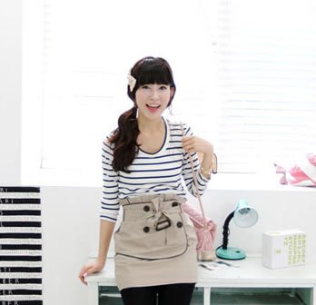 海军风最注重简约色调和对于线条的掌握。简单的条纹纯棉底衫百搭性极强,新颖剪裁的高腰短裙彰显对于排扣和线条的掌握。搭配leggings,充满时尚气息。