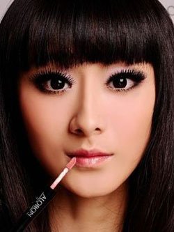 最后用闪亮并带有光泽的唇彩来表现如水果般水润娇嫩的唇。