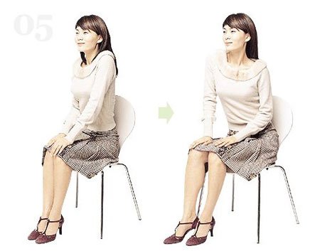 将两手放在膝盖上,然后将重心分别放在左右腿上,这是骨盘能够得到充分的运动,每天反复50次。