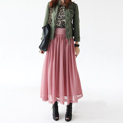 这条半身长裙,美得让爱美网小编快要窒息,这种橡皮粉色,大爱的颜色,雪纺材质带来了无可比拟的质感,飘逸感觉更倍添自信。军装外套,秋冬职场时尚竞赛必须的,这个秋冬必须的,搭配任何短裙、紧身牛仔裤、高腰裤、打底裤……所有流行单品都可以!