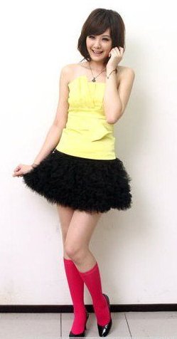 黄色抹胸衣加黑色蓬蓬裙,青春阳光美少女呼之欲出,再搭配一双红色中筒袜,明艳的色彩搭配让人眼前一亮,显得更加活力四射,俏皮可爱。