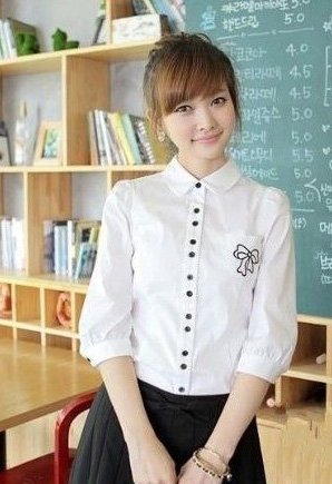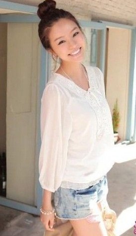 白色的衬衫纯净甜美~很适合初秋季节哦!搭配短裤短裙美呆了~