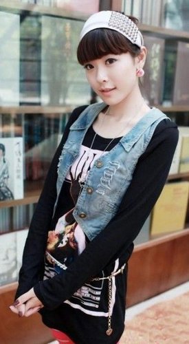 这样的假翻领马甲最新上架的,相信MM也超爱这款,搭配简单的长款T恤,照样可以很百搭。