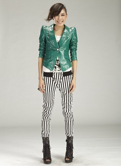 时尚浅析: 皮衣也可玩转潮流色彩。新一季流行色开始与皮衣共舞,立体耸肩与刀领设计,打造帅气的中性气质。多省道拼接剪裁处理,完美修身,挺拔感突出。两侧双口袋与华丽果冻绿色,展露你的贵族气质。高品质的简洁入门款式,内搭T恤就很有范儿。