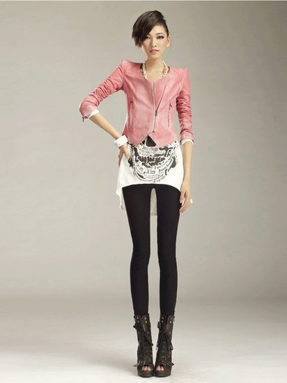 时尚浅析:机车皮衣依旧大放异彩,款式上则更收短的一些却凸显挺拔感,然而传统的机车皮衣夹克改良成为的圆领垫肩款,增添了女性的温柔妩媚味道,活泼的粉红色让搭配起来更随意贴心。