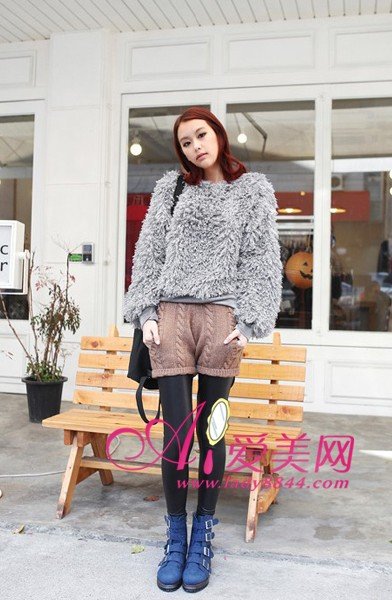 毛茸茸系列服饰是这个冬日最不能错过的啦,除了带来温度之外,还给人温馨的感觉,搭配毛线短裤更加特别。