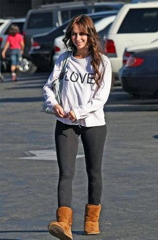 詹妮弗·洛芙·海维特 (Jennifer Love Hewitt) 的黑色Leggings搭配雪地靴非常显瘦哦!