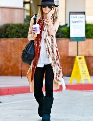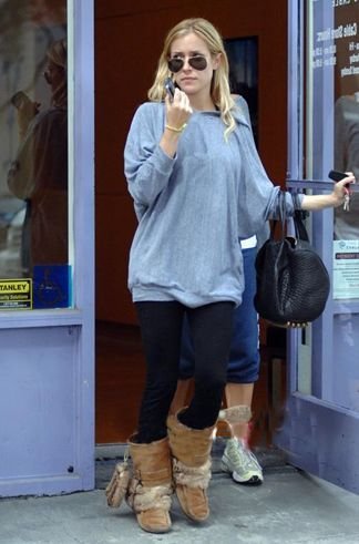 妮可·里奇 (Nicole Richie) 也是雪地靴的大爱者!选择黑色裤子与深色雪地靴相配具有熟练效果。