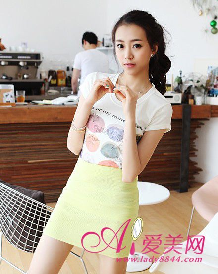 简单的白色T恤搭配黄色包臀裙,充满小女人的味道,看似简单的搭配,但是不凡的效果却会让你非常养眼。