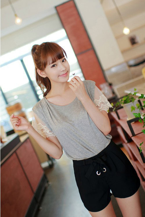 蕾丝袖口设计让休闲的t恤也增加一点公主范的淑女甜美风格