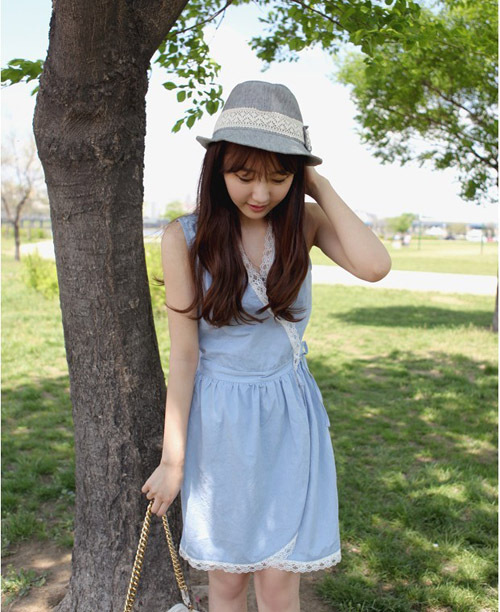 很清新的牛仔蓝 唯美的气质与蕾丝的甜美浑然一起