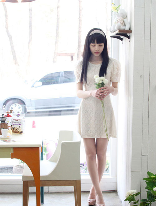 领口一圈的蕾丝花边 增加裙子的甜美公主范