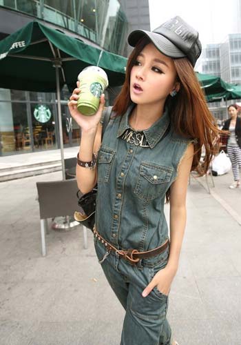 这条连体裤是属于比较容易搭配得中性一些的款式,帅气的很,而且显瘦的哦。