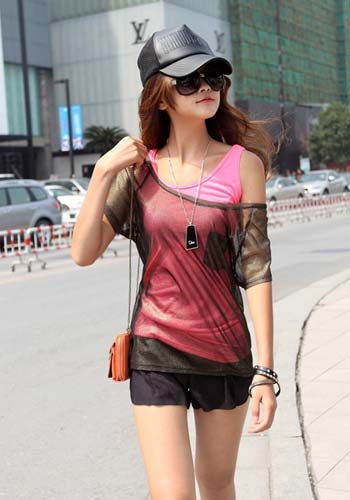 上衣韩版t恤宽松潮,露着小性感的味儿,让你潮翻天。