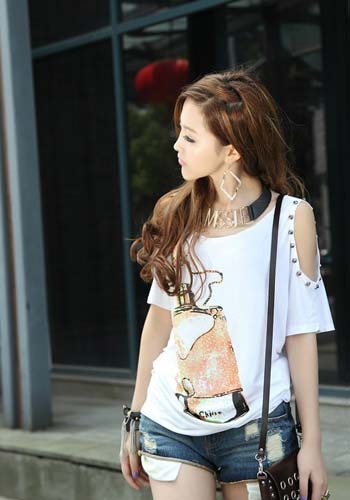 露肩香水不显肚短袖T恤,宽松的版型,上身非常舒适的哦。