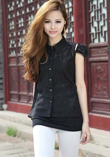经典的黑色上身非常显瘦的哦,上身时尚百搭。