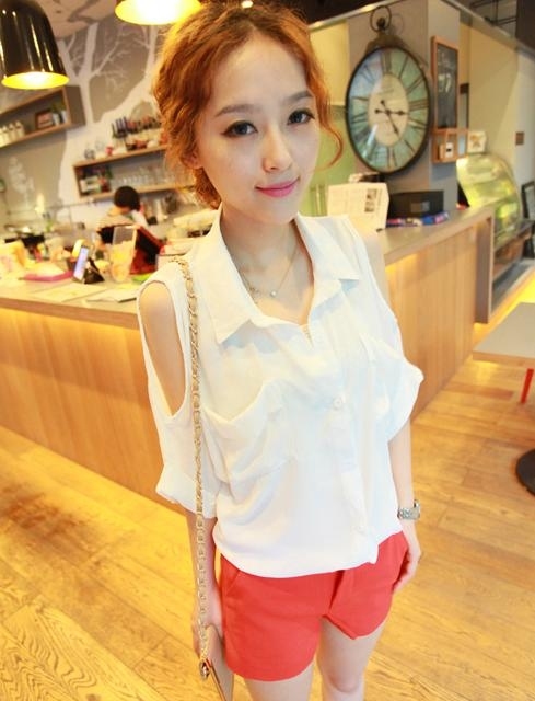雪纺纱质的无袖衬衫,手感柔软,垂顺,看上去休闲安静的同时,颇具气场。透明的材质注定你必须搭配小背心等内搭
